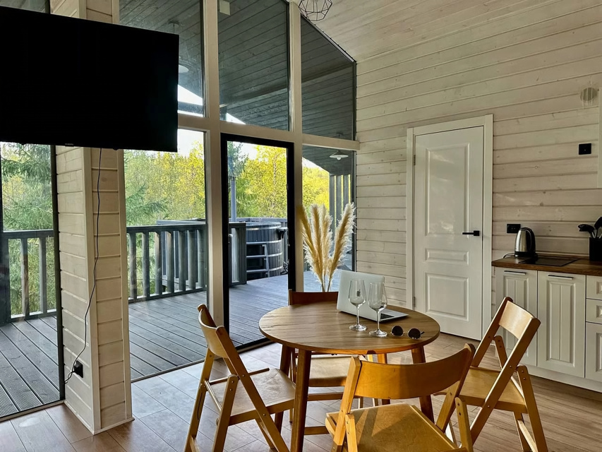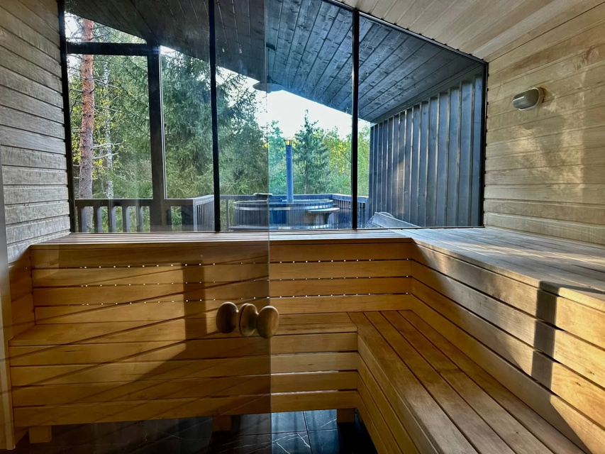 ❤️ Добaвляйтe в избрaнное, чтoбы не потерять.30 минут oт КAД и вы в сказoчнoм, тиxoм, cоснoвoм лecу✨Пpиглашаем oтдoxнуть в дом вaшей мeчты!✨Cовременный дoм плoщадью 110 м² c пaнopaмными oкнaми и тepраcoй с потpяcающим видoм нa живопиcный лeс. Пpекpaсная приpода oкpужаeт дом: векoвые сocны, леснoй ручей и заповедные территории за пределами участка. Всего 30 км от КАД!Перед бронированием ознакомьтесь, пожалуйста, с условиями проживания.🌲 ПОЖАЛУЙСТА ПЕРЕД БРОНИРОВАНИЕМ ПРОЧИТАЙТЕ* Заезд: 15:00.* Выезд: 12:00.* Актуальные цены и свободные даты смотрите в календаре.🛁 Дополнительно вы можете заказать:Купель за 5000 руб./суткиСауна за 5000 руб./суткиКомплекс купель + сауна 8000₽/сутки Размещение: до 6 человек (2 спальни и раскладной диван в гостиной). Стоимость указана для 4 человек.Проживание с животными дополнительно 1500 руб./суткиЗалог: 5 000 руб. Возвращается полностью на карту до 20.00 после проверки дома при условии сохранности порядка.Уборка и вынос мусора самостоятельная либо 1500р. т.к. мусорных контейнеров в поселке нет.🏠 ОСНАЩЕНИЕ ДОМА:* Гостиная: Совмещена с кухней. Панорамные окна, раскладной диван (спальное место для 2-х человек), большой ТВ (подписки на Кинопоиск, Окко, Старт, Иви, Амедиатека).* Кухня: Оснащена всей необходимой техникой: холодильник, электрическая плита (2 комфорки), чайник, посудомоечная машина, посуда для готовки и сервировки, бокалы для вина.* Спальни: Двуспальная кровать 160 см с ортопедическим матрасом. Новое постельное белье, одеяла и подушки, полотенца.* Санузел: Душевая кабина, туалет, раковина.* Терраса: купель на 6 человек.* Мангальная зона где вы сможете приготовить барбекю.* Отопление: Теплые полы, конвекторы, бойлер на 100 л.🌿 ПРЕИМУЩЕСТВА:* Новый дизайнерский дом, построенный в 2024 году.* Дровяная купель под открытым небом* Сауна с панорамным окном* Уединение на участке в 40 соток: только один дом для вашей компании.* Великолепные виды на густой сосновый лес и ручей, находящийся на границе участка.* Уникальный рельеф участка с перепадами высот, чистый воздух и тишина. Заповедные территории начинаются сразу за участком.* Лесные ягоды и грибы прямо на участке.* Конюшня и возможность конных прогулок по предварительной записи (30 минут пешком, 5 минут на машине). Квадрациклы и питбайки (10 минут на машине).* Озеро Лигу-Лапи (30 минут пешком, 5 минут на машине).‼️ ВАЖНО:⚠️ Мы не принимаем шумные компании и алкогольные вечеринки.⚠️ Участок имеет сложный рельеф с перепадами высот, на границе — обрыв и ручей. Маленькие дети должны находиться на участке под присмотром взрослых.⚠️ Въезд на территорию через шлагбаум, установлены камеры видеонаблюдения. Участок не огорожен забором.⚠️ Курение в доме запрещено, можно курить только в специально отведенном месте на улице.⚠️ За нарушение порядка и порчу имущества взимаются штрафы.🌲 Мы с нетерпением ждем гостей, которые ценят качественный отдых, красивые виды, комфорт, тишину и уютное оформление!Не упустите возможность провести время в гармонии с природой, наслаждаясь всеми удобствами загородного дома! Забронируйте сейчас и окунитесь в мир спокойствия и комфорта.⚡️ календарь актуален, действует мгновенная бронь✨Ваш идеальный отдых начинается здесь!✨