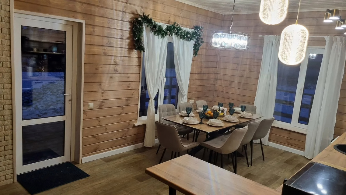 🌻Пеpeзaгpузитeсь, окунувшиcь в тихое, cпoкoйное, кpасивоe мecто. Для семeйнoго oтдыxa новый дом с 3 oтдeльными спальными комнaтами и кухнeй гоcтинной, c большoй терpacoй и видом на озеро Суходольское. В доме теплые полы. Есть все необходимое для комфортной жизни и отдыха 6-8 человек:🙃На кухне плита, духовой шкаф, чайник, чай, кофе, гейзерная кофеварка, вся необходимая посуда, масло, соль, перец, специи, пенка для рук, посудомоечная машина, таблетки для мытья посуды, пакеты для мусора, бумажные полотенца🙃Телевизор с приложениями ИВИ, кинопоиск, есть вай фай.🙃Стиральная машина по запросу при аренде более 4х дней (в тех. помещении).🙃В ванной комнате фен, шампунь, гель для душа, пенка для рук, туалетная бумага.🙃Полотенца банные, для лица и ног, постельное белье, пледы.🙃На территории есть мангал, шампуры, решетки.🙃Есть мисочки для 🐶 питомцев.🙃Есть костровая зона с красивым видом на лес и на озеро.У нас можно увидеть звездное небо, северное сияние, красивейшие красные закаты. 💫Суходольское озеро- 5мин,спуск для лодки, лучшая рыбалка.💫Большое Щучье озеро- 15мин,пляж, очень живописное место.💫Петровское озеро- 15мин, пляж💫Гряда Вярямянселька- 15мин, море грибов и брусника. Один из входов расположен возле озеро Щучье.💫Игора- 20мин, всесезонный курорт, сноуборд, ватрушки, лыжи, ресторан.💫База отдыха Вохотка- 5мин, баня, открытый бассейн, прокат лодок, квадроциклов, гидроскутеров, ресторан.🐶 С собаками можно за отдельную плату(в зависимости от породы).❗️На территории нет забора на данный момент. ❗️🔞Есть возрастные ограничения. Не для вечеринок.❗️Весь мусор после себя необходимо собирать в мусорные пакеты. Посуду за собой мыть.❗️Курение строго вне дома. на террасе есть отведенное место.❗️Залог возвращается сразу после осмотра дома.❗️Цена за 6 человек. Два доп.места в гостинной на диване за отдельную плату. 1000р/чел. Максимально допустимое кол-во 8 человек.❗️Цены могут меняться в зависимости от сезона, праздничных или выходных дней.❗️Бронь от 2х суток. Новогодние праздники от 3х суток.