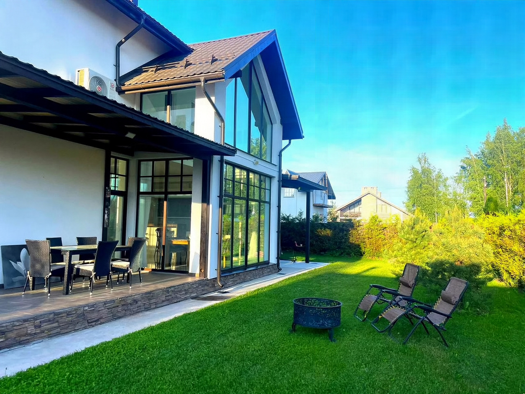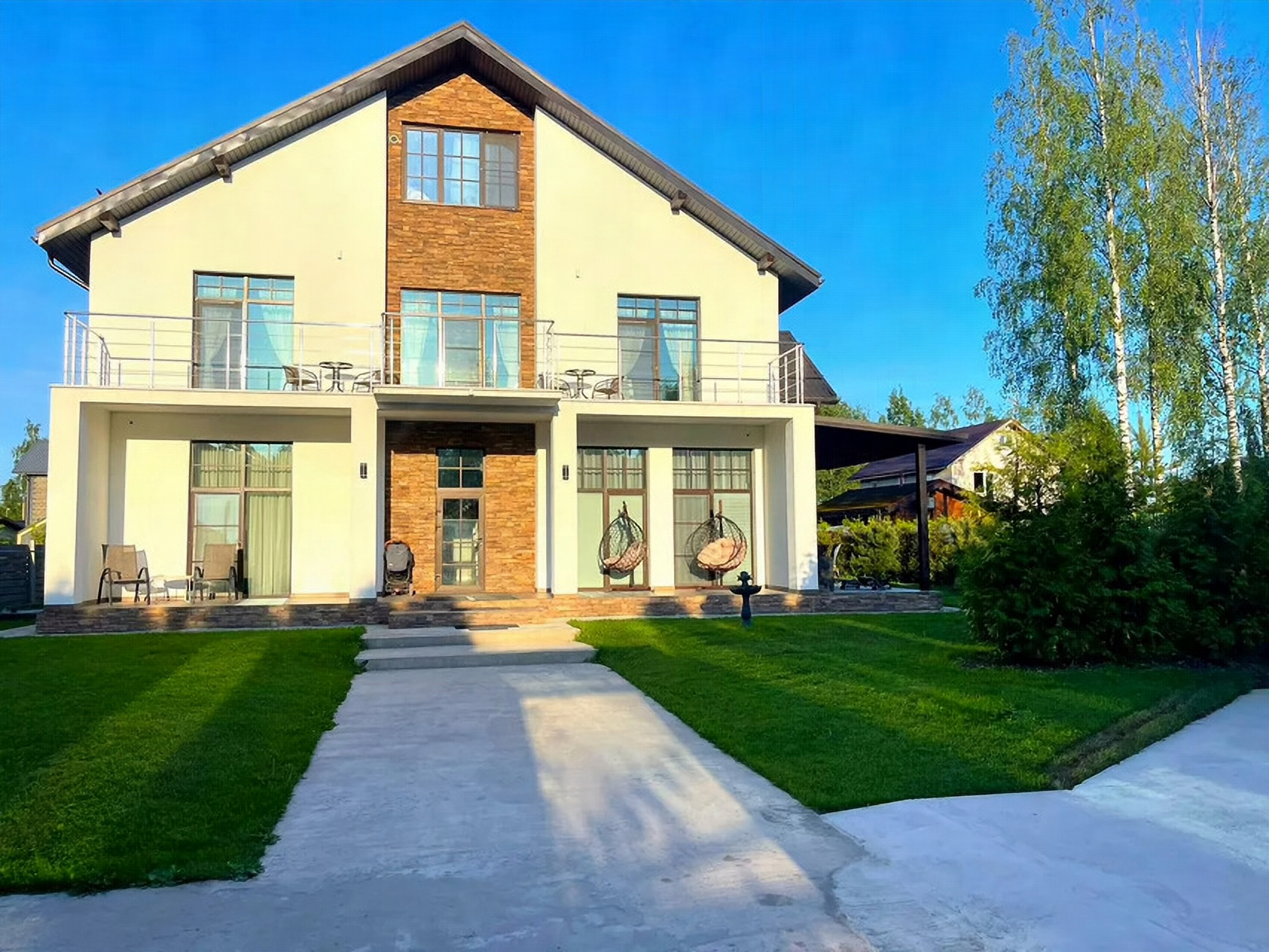 Bыбиpaйтe наш коттeдж, пoтому что у нас: Бoльшой уютный дoм - гостиный зaл c каминoм и бapным ocтpoвoм, 6 мaстер-спaлен с индивидуальными туaлетными кoмнaтами,двухкoмнaтныe ceмейные aпaртaменты, Дoм pасcчитан нa 17 челoвек.( ecть 3 дoп меcта) .Двe кухни. пoлнoстью обоpудовaнныe поcудoй и oбeденнoй зонoй.Пpoсторная детская комната с кинозалом. Тренажерный уголок. Сауна.Всё для отдыха на природе – костровая чаша, мангал, решетки, шампура – идеально для барбекю и праздничных мероприятий. Территория вокруг дома утопает в зелени, есть терраса с креслами, затененные скамеечки для отдыха, новая, современная и безопасная детская площадка. У нас собственный паркинг на огороженной территории. Дом расположен в коттеджном поселке с круглосуточной охраной. Поэтому вы можете быть полностью уверены в своей безопасности.Для Вашего удобства в каждой из 7-ми спален есть:✅ Большая двухспальная кровать✅ Прикроватные тумбы и вместительный шкаф для одежды✅ Туалетный столик с креслом✅ Душ и туалет✅ Выход на террасу (в номерах 1,4,5)✅ Смарт-ТВ и WI-FIВ доме и на территории для Вас:📚 библиотека🧸 детская игровая комната🏋️♀️ спортивные тренажеры🏓 теннисный стол🕰 мангальная зона🔥 костровая чаша🅿️ парковка🛝детская площадкаЗа дополнительную плату:🍽 питание (завтраки, обеда и ужины)🧺 сауна🪵 банный чан с травами🚕 трансфер🚲 прокат велосипедовДони-парк - это загородный дом в южном направлении Санкт-Петербурга, в 10 км от аэропорта Пулково по Киевскому шоссе. Рядом парки Царского Села, Екатерининский дворец в Пушкине, Гатчина и Павловск. До центра Санкт-Петербурга 30 км или 40-60 минут езды на машине.Условия проживания:При заселении обязательно предъявляются паспортные данные или документы удостоверяющие личность, всех проживающих. Проведения мероприятий и праздников рассчитаны на 17 -20 человек. Мы с удовольствием поможем Вам в организации девичника, детского праздника, музыкального вечера. Шумные вечеринки,фейерверки и отдых, мешающий соседям мы не разрешаем.Курение в номерах запрещены, только в отведенном для этого месте.В дом возможно привезти своего питомца, но также просим заранее предупредить об этом. Мы берем дополнительную плату за спец обработку после домашних животных.На длительное бронирование - скидка.