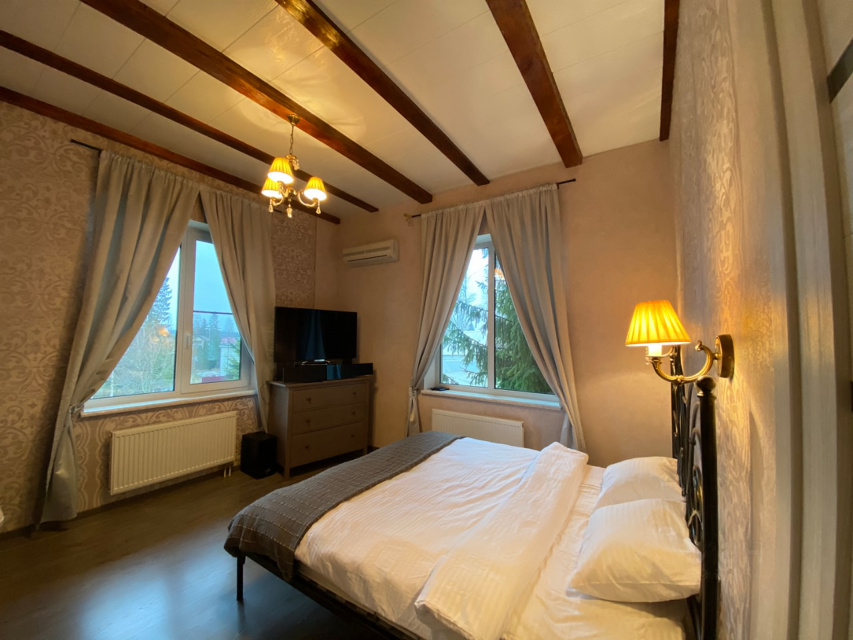 Уютные спальни второго этажа с личными гардеробными, кондиционерами и тв комфортно разместят гостей для отдыха. Каждая кровать застелена белоснежными сатиновыми постельными комплектами белья и полотенцами. На этом же этаже можно расслабиться в джакузи.