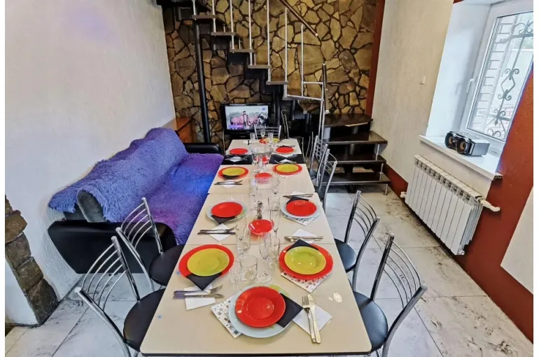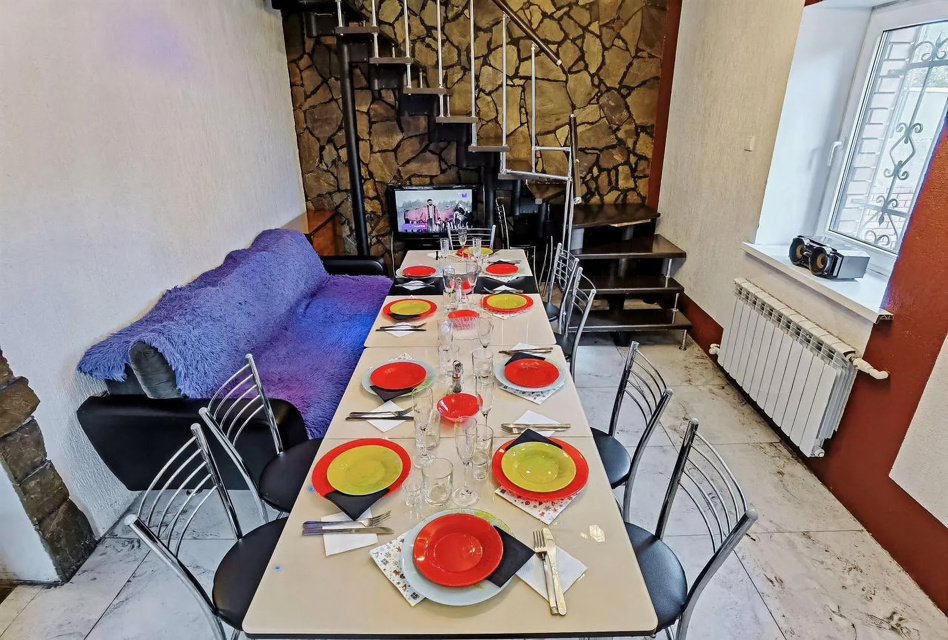 - Гостиная с кухней и столом. Возможно посадить до 20 человек