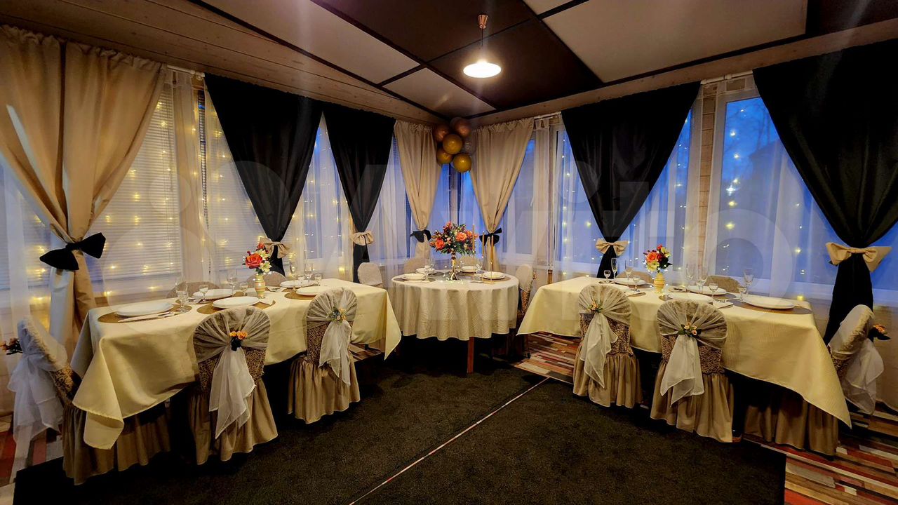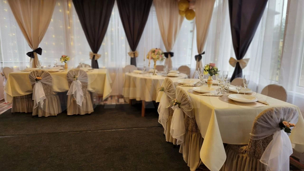 — в банкетном зале один большой круглый стол и 2 прямоугольных стола, посадочных мест 14