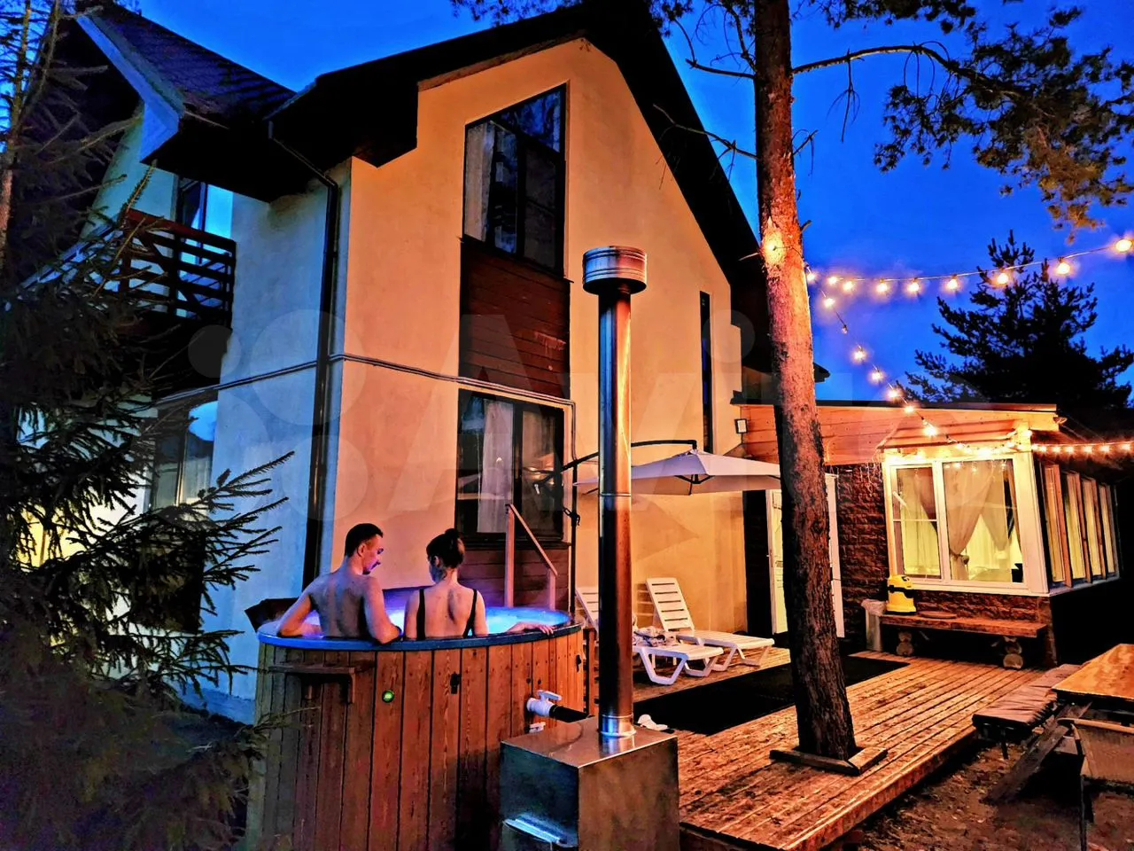 🌞 Джакузи с подогревом, аэромассажем и романтической подсветкой, под открытым небом🌌🌲