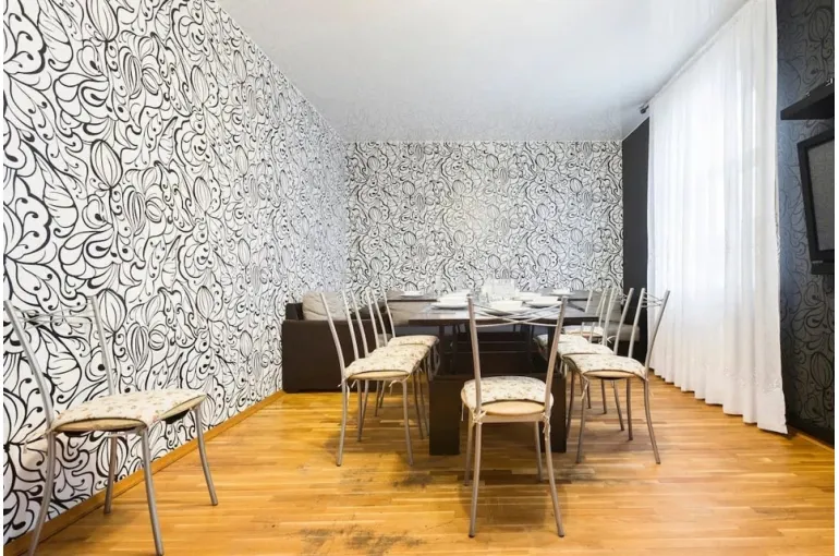 8 спален, гостиная, кухня, 27 спальных мест +2 детские кроватки, 2 сан.узла, (Душевая кабинка и ванная), сауна.